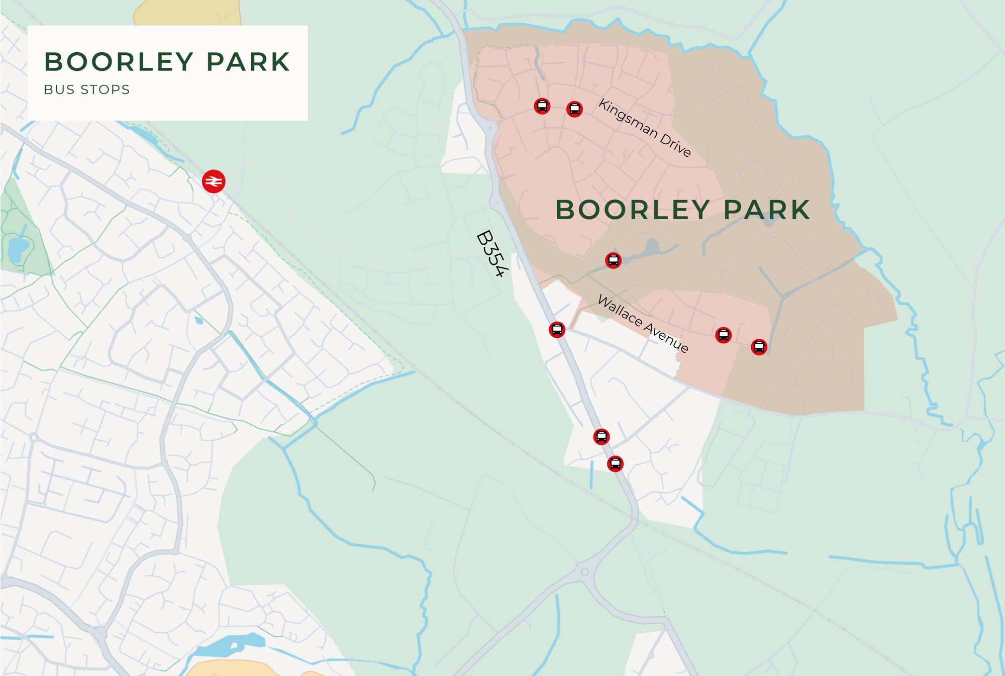 Boorley Park is located close to several bus stops including the Pear Tree stops, from which you can access the Bluestar 3 (Southampton to Eastleigh), Stagecoach 649 (Hedge End Park to Bishops Waltham) and Bluestar 425 (Boorley Park to Barton Peveril College). Onward connections are available from additional services in Southampton, Eastleigh and Bishops Waltham.